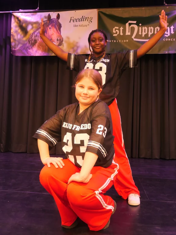 Ergänzt wird das Ganze durch Elemente aus dem Hip-Hop, wie zum Beispiel bestimmte Grooves und Techniken, die eine solide Basis für alle Bewegungen bilden. Außerdem integrieren wir andere Stile, wie zum Beispiel den kraftvollen und rhythmischen Dancehall, um unsere Choreografien noch vielseitiger und abwechslungsreicher zu gestalten.